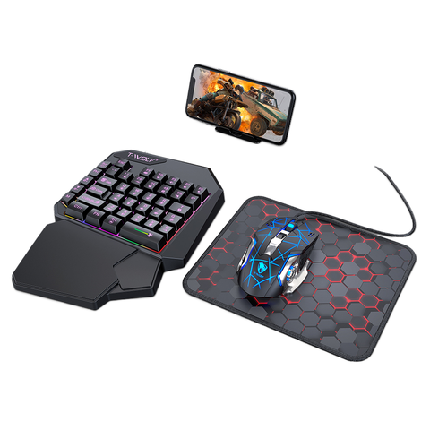 TF950 5IN1 35 Teclas Teclado para Juegos con Cable Único Mouse Mousepad Convertidor Soporte para Teléfono USB Impermeable para Comer Pollo